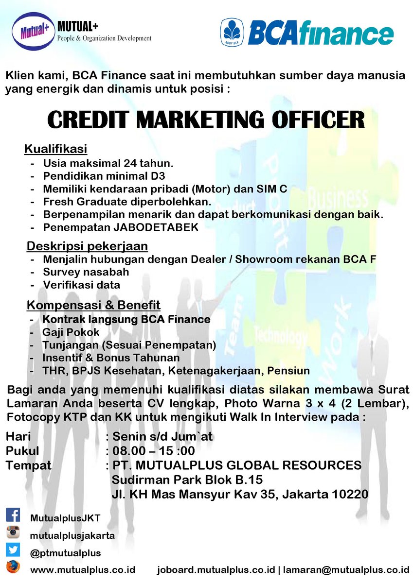 تويتر Pt Mutualplus Global Resources على تويتر Lowongan Nih Guys Posisi Credit Marketing Officer Kontrak Langsung Tetap Dengan Bca Finance D3 Umur Max 24 Tahun Https T Co Uze0jfa1x1